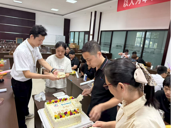 公司常務副總黃總帶領各位領導親臨現場,一走進活動場地,便面帶親切笑容向壽星們揮手致意。黃總拿起話筒,溫和的話語里滿是真誠:“今天看到大家齊聚一堂,特別開心!八月的壽星們在崗位上兢兢業業,為公司發展添磚加瓦,這份付出我們都看在眼里。在此代表公司,祝大家生日快樂,愿大家在工作中收獲成長,在生活中滿是幸福!”