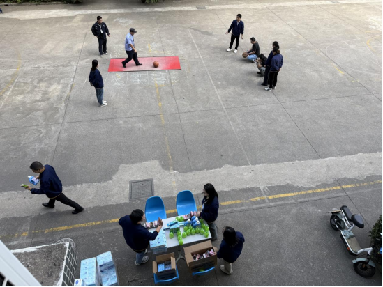 “活動現(xiàn)場早已布置妥當,地面上用彩色粉筆清晰劃分出不同的禮品兌換區(qū),洗衣液、洗手液、牙膏等實用好物靜靜“待命”,等待著幸運主人的認領。每人兩次發(fā)球機會,命中次數(shù)直接對應禮品等級,就算一次未中也能收獲參與獎,這樣的“暖心規(guī)則”讓每個人都毫無壓力,盡情投入。